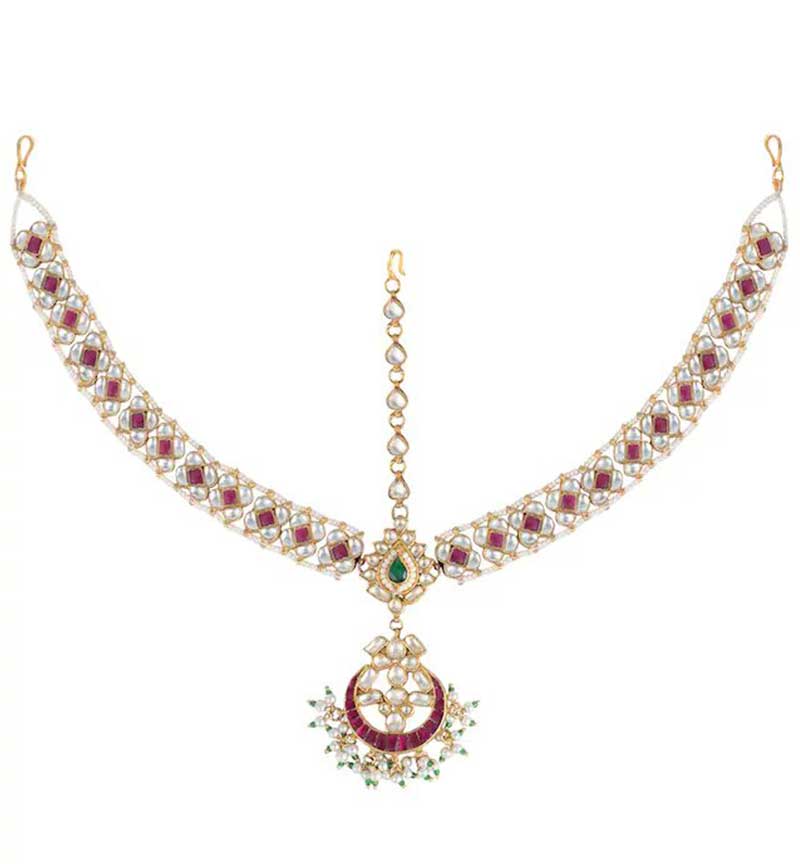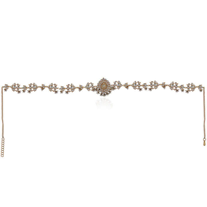 PRODUCT DESCRIPTION Featuring a gold plated White Jadtar Stone Maang Tikka With Light Pink Hangings COMPOSITION Copper and silver mix. CARE Try to avoid contact with perfumes, chemicals,moisture, excessive force. DISCLAIMER This product will be shipped to you after 3-4 week from the date of order placed. Brand...