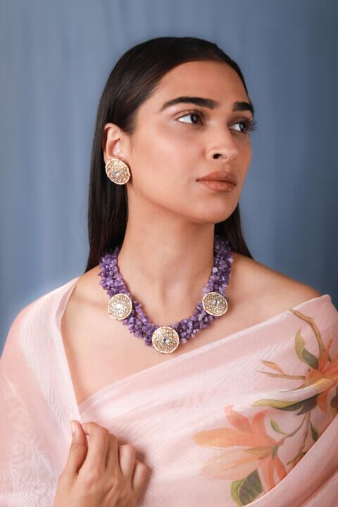 Amethyst beads purple jadtar stone choker set/Handmade necklace