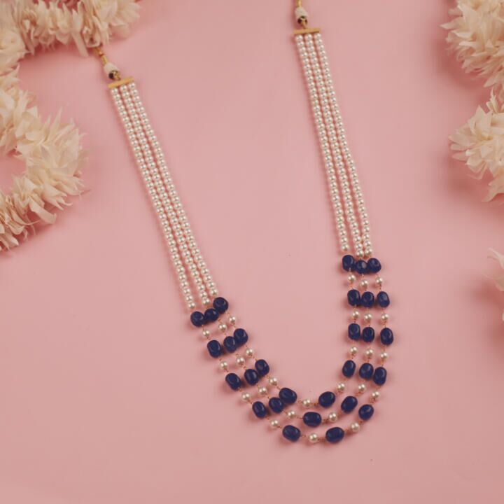 Blue and white 3 layered sapphire gemstone Beaded Necklace Maala