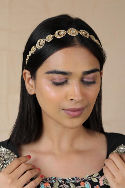 Delicate festive wears/destination wedding wear mathapatti cum hairband