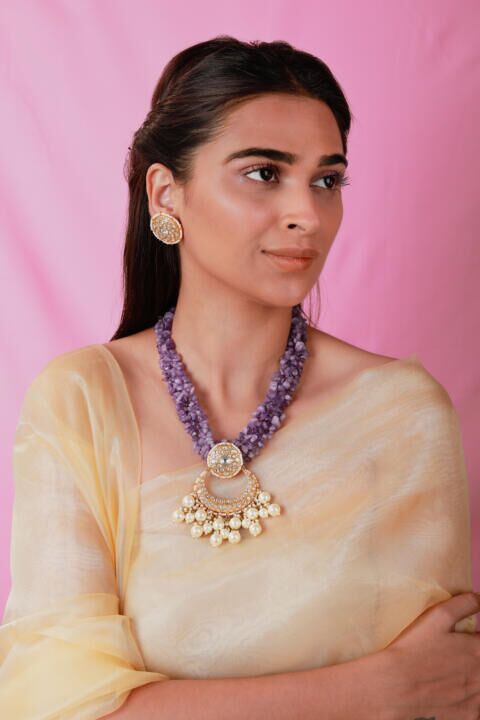 Designer Handcrafted Amethyst Beads and jadau Necklace by riana jewellery
