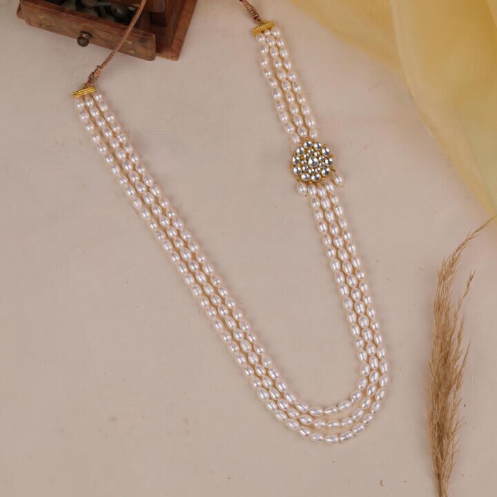 Elegant white long pearl maala for Men sherwani maala