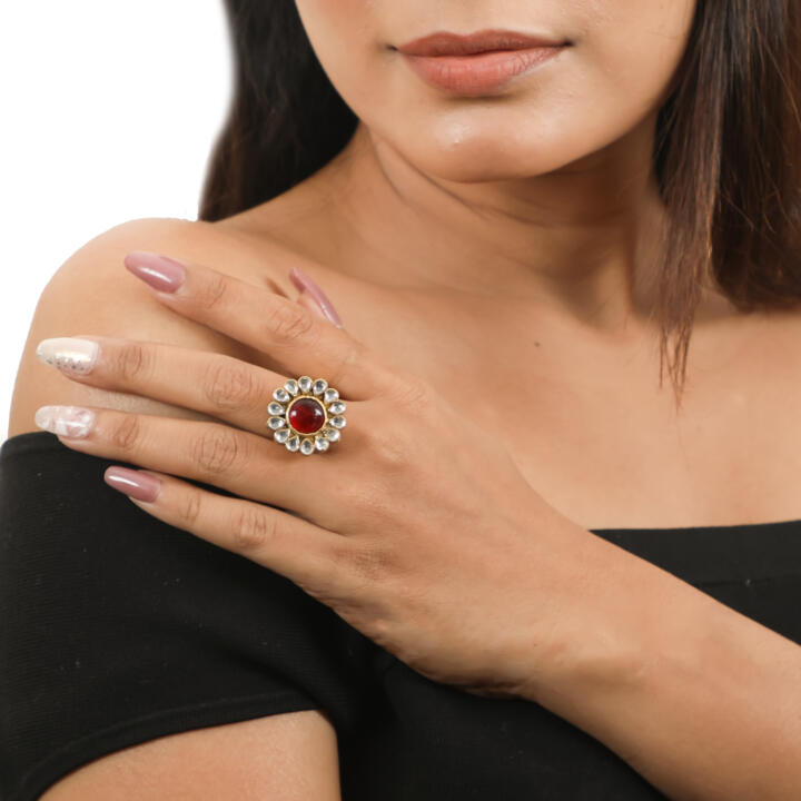 Floral Ring With Pink Centre Stone