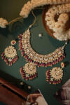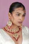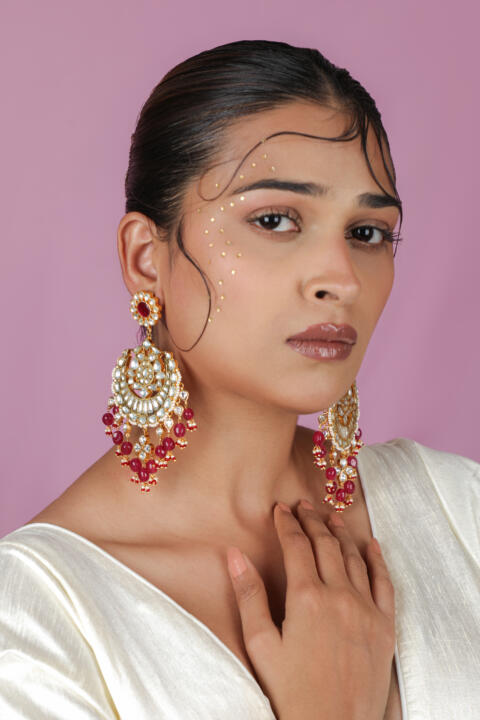 Gold plated rose pink beaded necklace set with chandbaali earings
