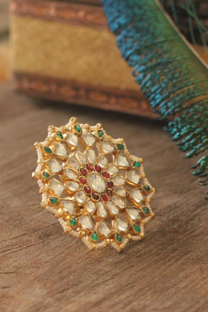 Green and red tone jadtar ring