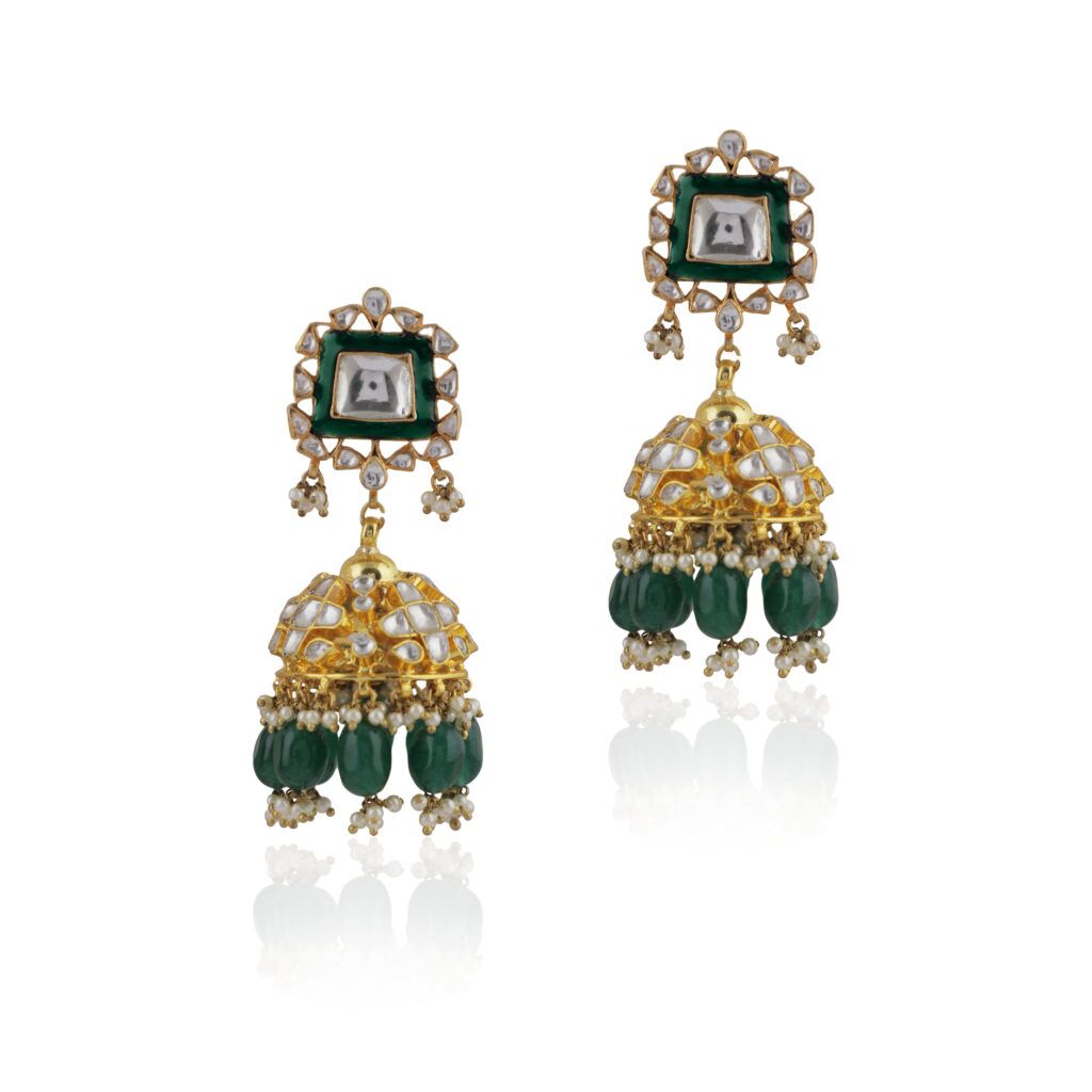 Green Meenakari White Jhumki