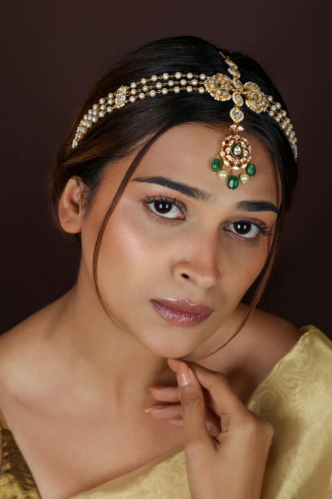 Green & white gold plated mathapatti