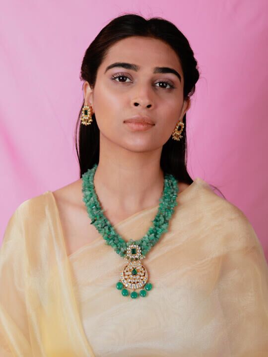 Handmade Semi precious jewellery,Emerald green bead Pendant Necklace