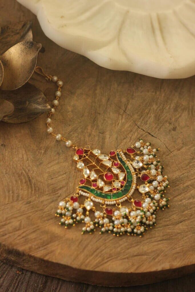 Indian forehead jewelry/Jadtar pink green maangtikka