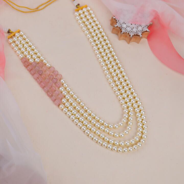 Light Pink beaded with white pearl festival wear maala for men