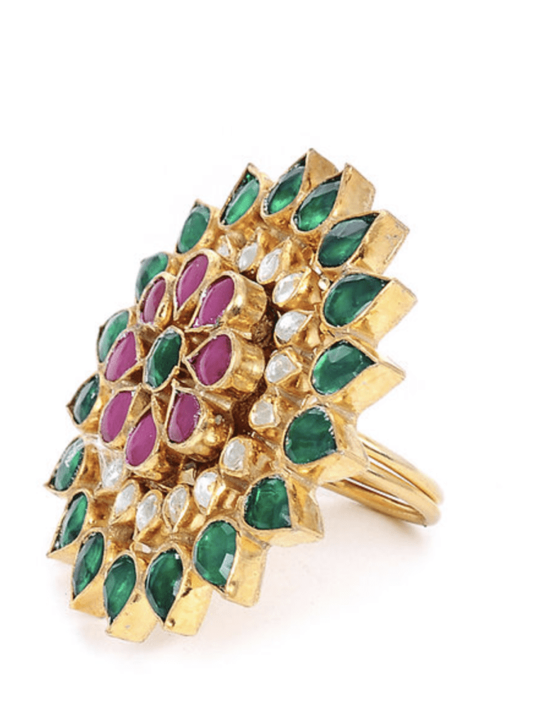 Glorify the elgance of your hand wearing this multicolor jadtar stone studded ring.