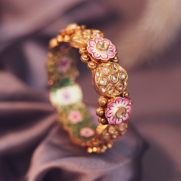 Pink And Green Meena Work Bangles (Single Pc)