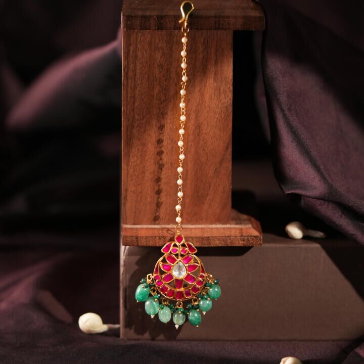 pink stone with white pearl tikka