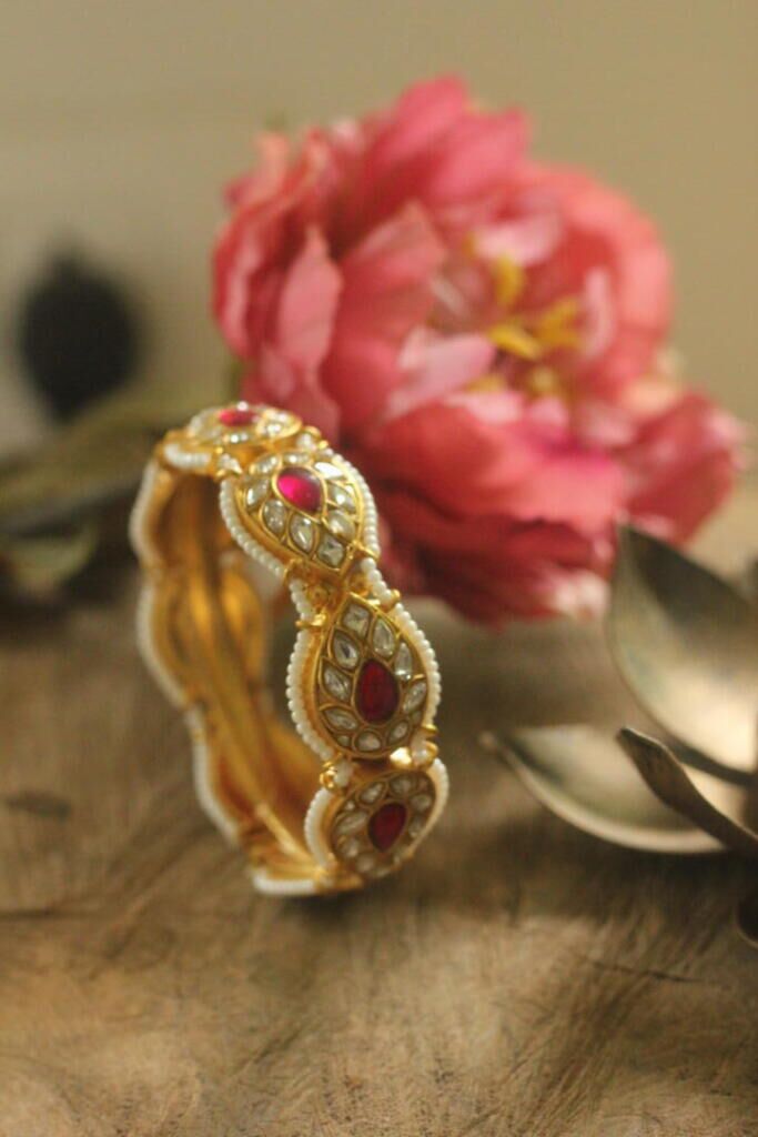 Pink white jadau Bangle (Single pc)