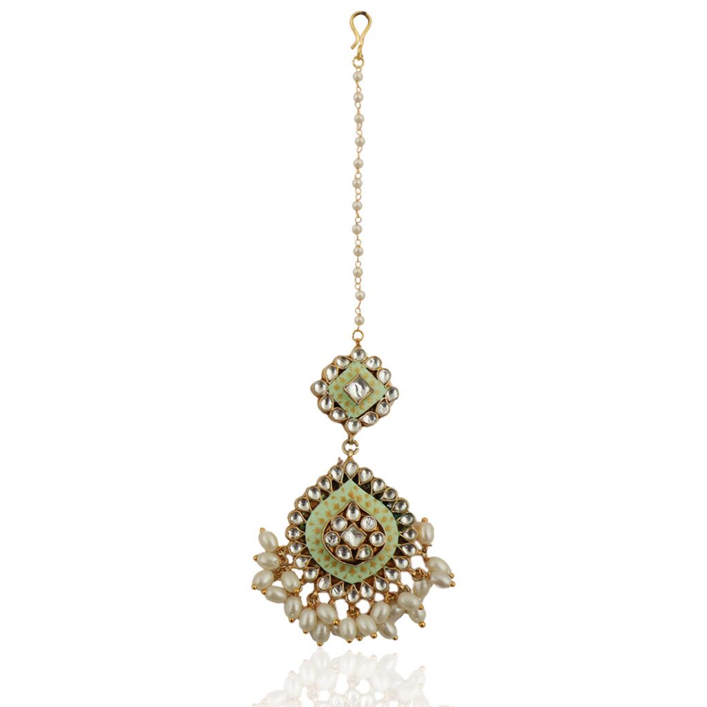 Pista Meena Work Tikka With Small White Pearls