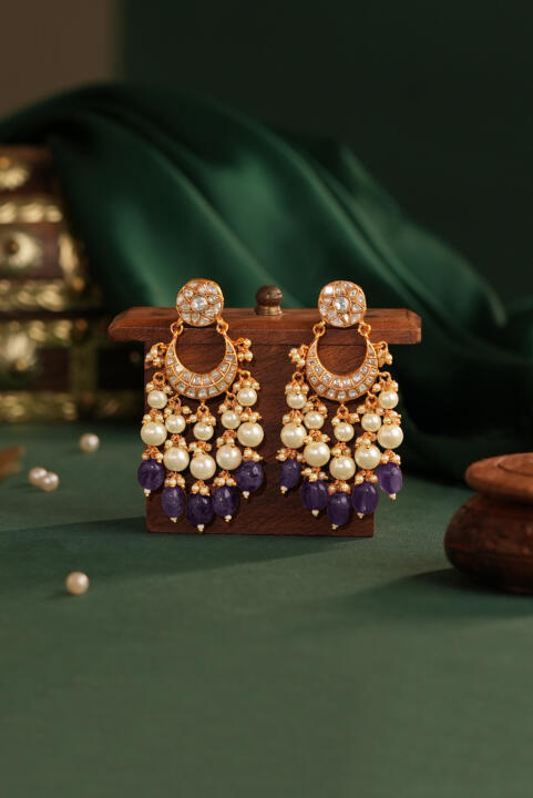 Purple beads with pearl beaded chandbaali