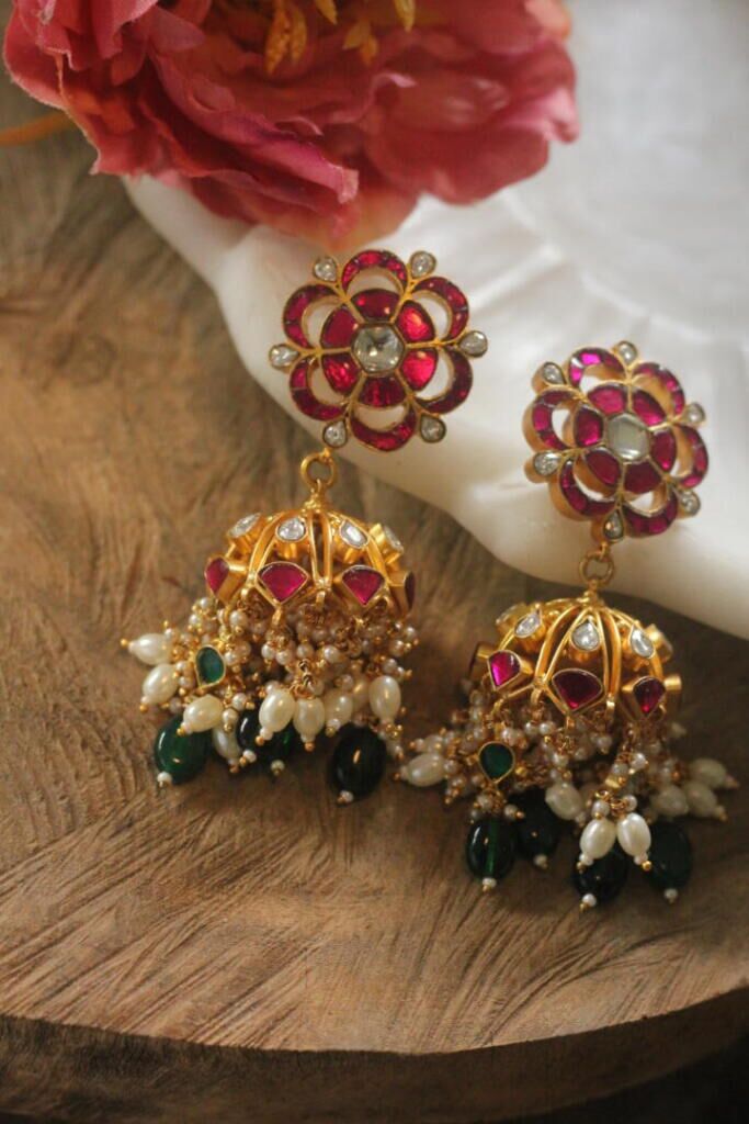 Riana Pink stone with green beadsTraditionl Wear Jhumka