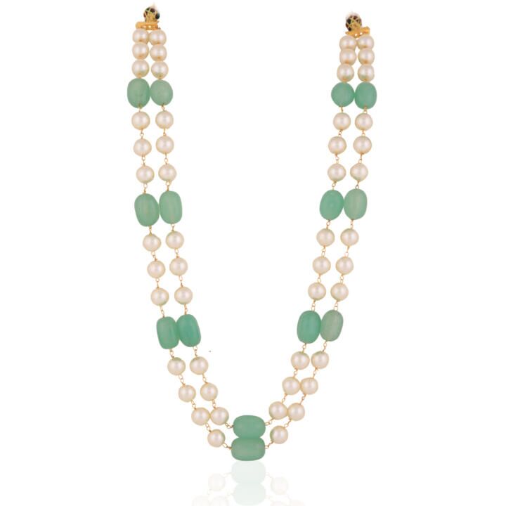 Sea Green Beaded With Pearl Mala
