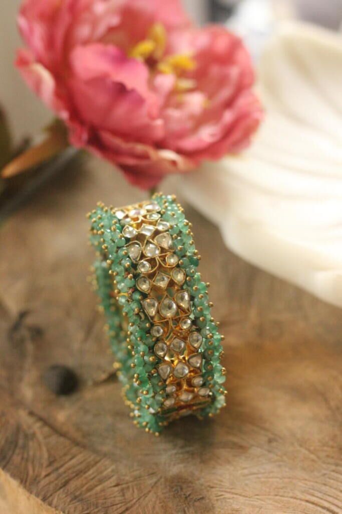 Sea Green Hangings With White Jadtar Bangle(Single Pc)