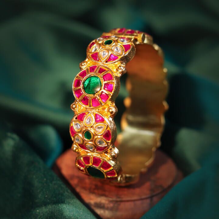 Statement Jadau Emerald Red & Green 22Kt Gold Plated Bangles(Single Pc)