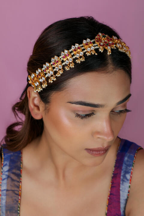 Traditional Ethnic Pink & White Pearl Hairband