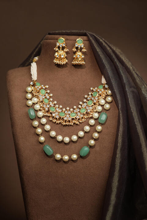 Traditional indian jewellery set with pearl and green beads