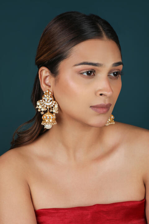 White hangings gold plated jhumka