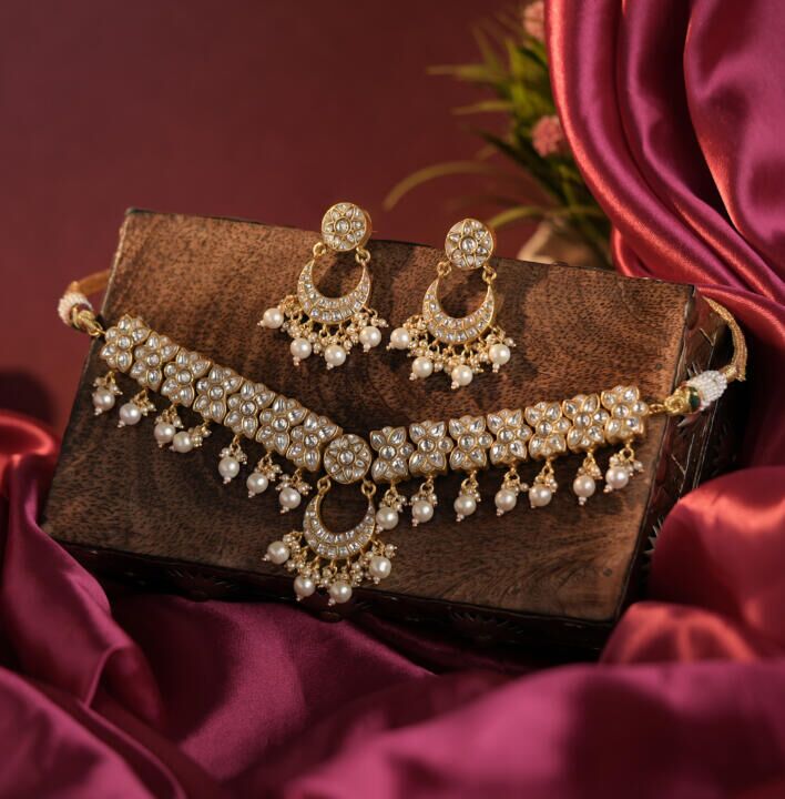 White pearl choker set