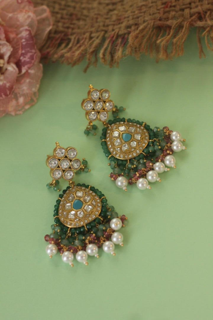White pearl Earrings with pink sea green hangings