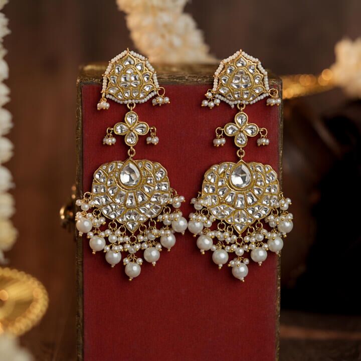 White pearl gold plated long Earrings