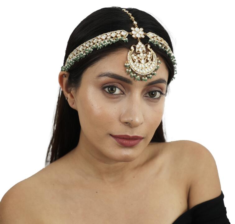 White Stone Heavy Mathapatti With Sea Green Hangings